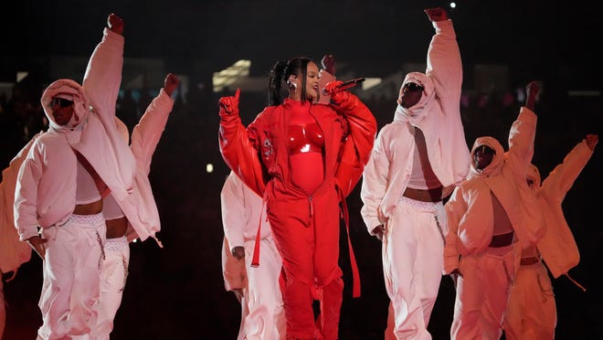 Halftime show recap:Pregnant and stunning in red, Rihanna crushed her comeback performance
